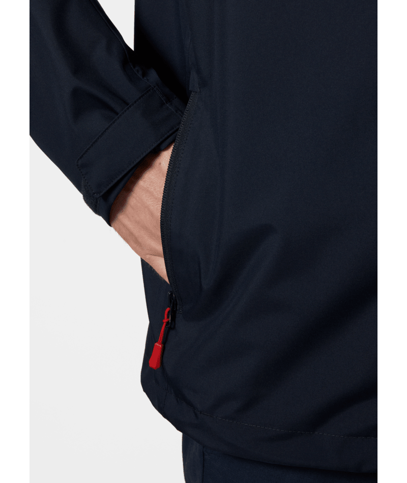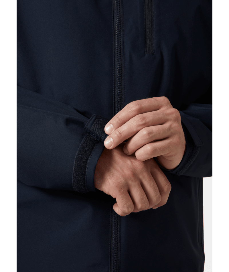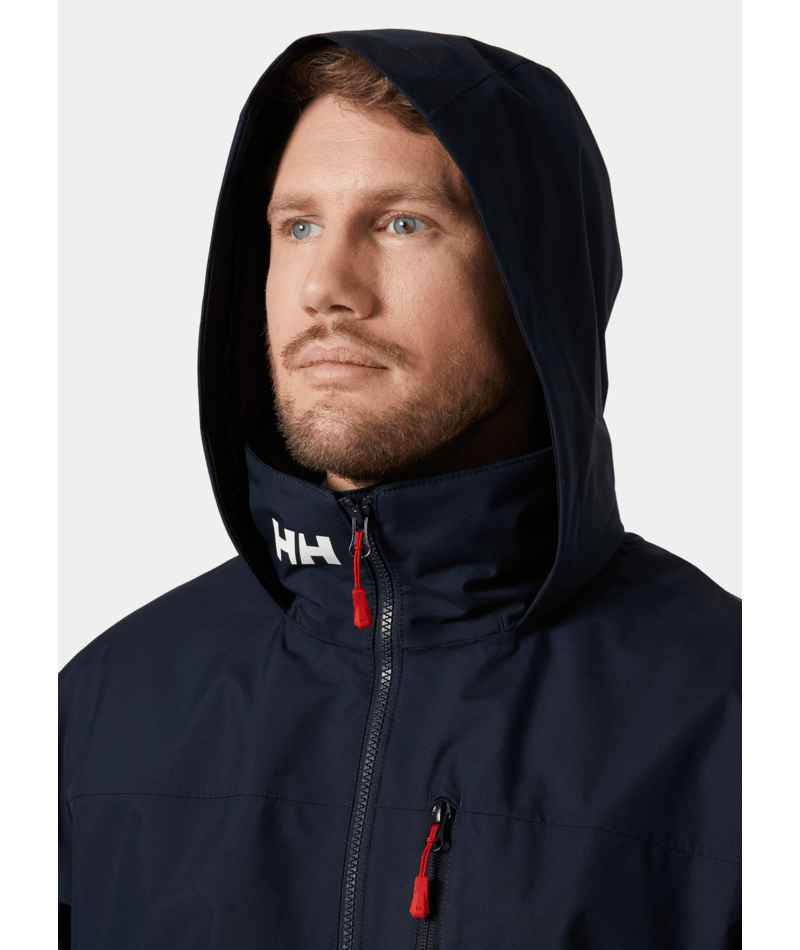 - We’ve spent years refining the Men’s Crew Hooded Midlayer Sailing Jacket 2 to bring you a waterproof, windproof, and breathable midlayer sailing jacket built with HELLY TECH® Protection. This midlayer jacket features an updated lining constructed with Polartec® fleece and a polyester insulation lined with taffeta in the sleeves so it slides on and off easily. The articulated elbow and shoulder allow for greater freedom of movement. The center front YKK® Vislon® zipper is stronger and more saltwater resistant, so it withstands corrosion. Its design also includes a hood that can pack down into the collar and hand pockets into the seam for a sleek, organized aesthetic.
