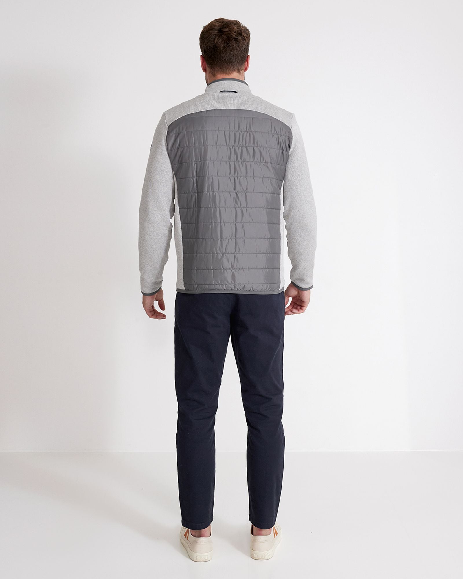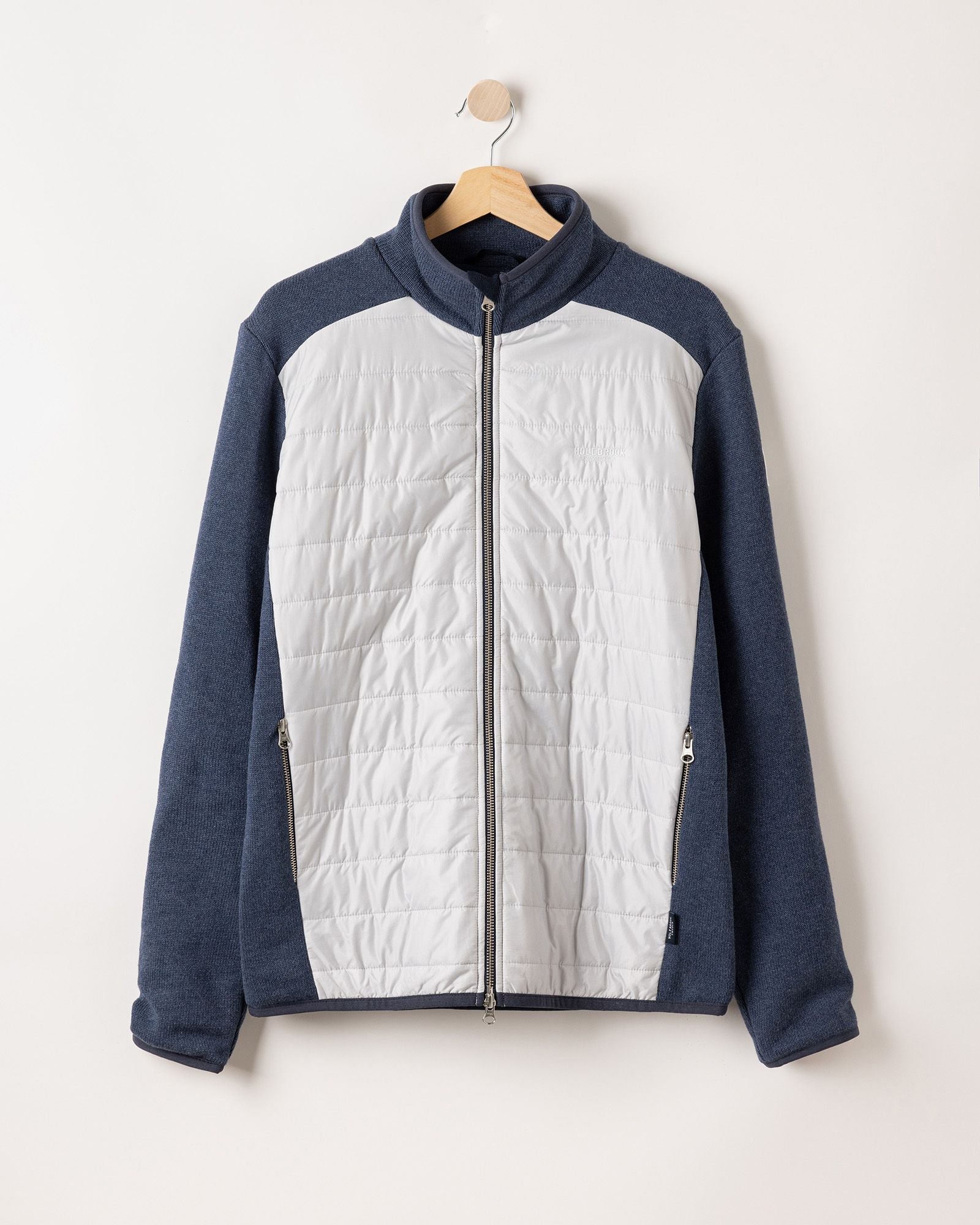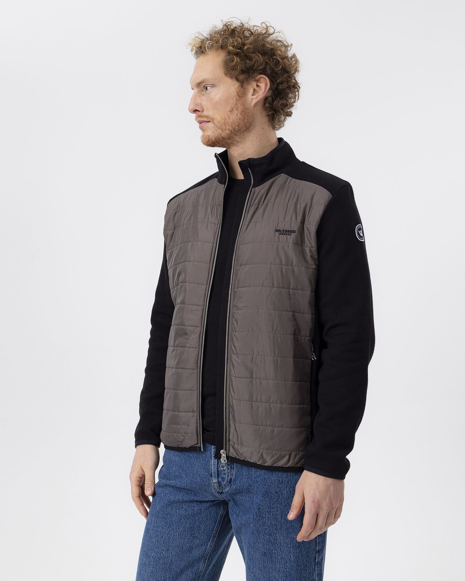 - Knitted jacket in cotton with windproof lining. Quilted details in water repellent fabric. Two-way metal zip and zip pockets. With the elastic bounded edges this jacket will stay in place if you are active. This is a knitted, functional jacket. Elastic windproof lining (96%polyester, 4% elastan).